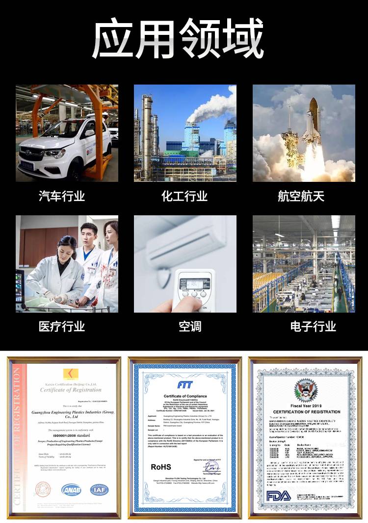 應(yīng)用航天航空、機(jī)械汽車、電子電氣、儀器儀表、醫(yī)療衛(wèi)生、石油化工、軍工核能等高科技工業(yè)領(lǐng)域,可制造高要求的機(jī)械零部件,現(xiàn)在國內(nèi)比較成熟的應(yīng)用有:空壓機(jī)的活塞環(huán)、止推環(huán)、活塞環(huán)、密封環(huán)、齒輪、星輪、軸承、螺絲、閥片、菌型圈、球閥閥座、軸承保持架、無油潤軸承、磁力泵隔離套等。
