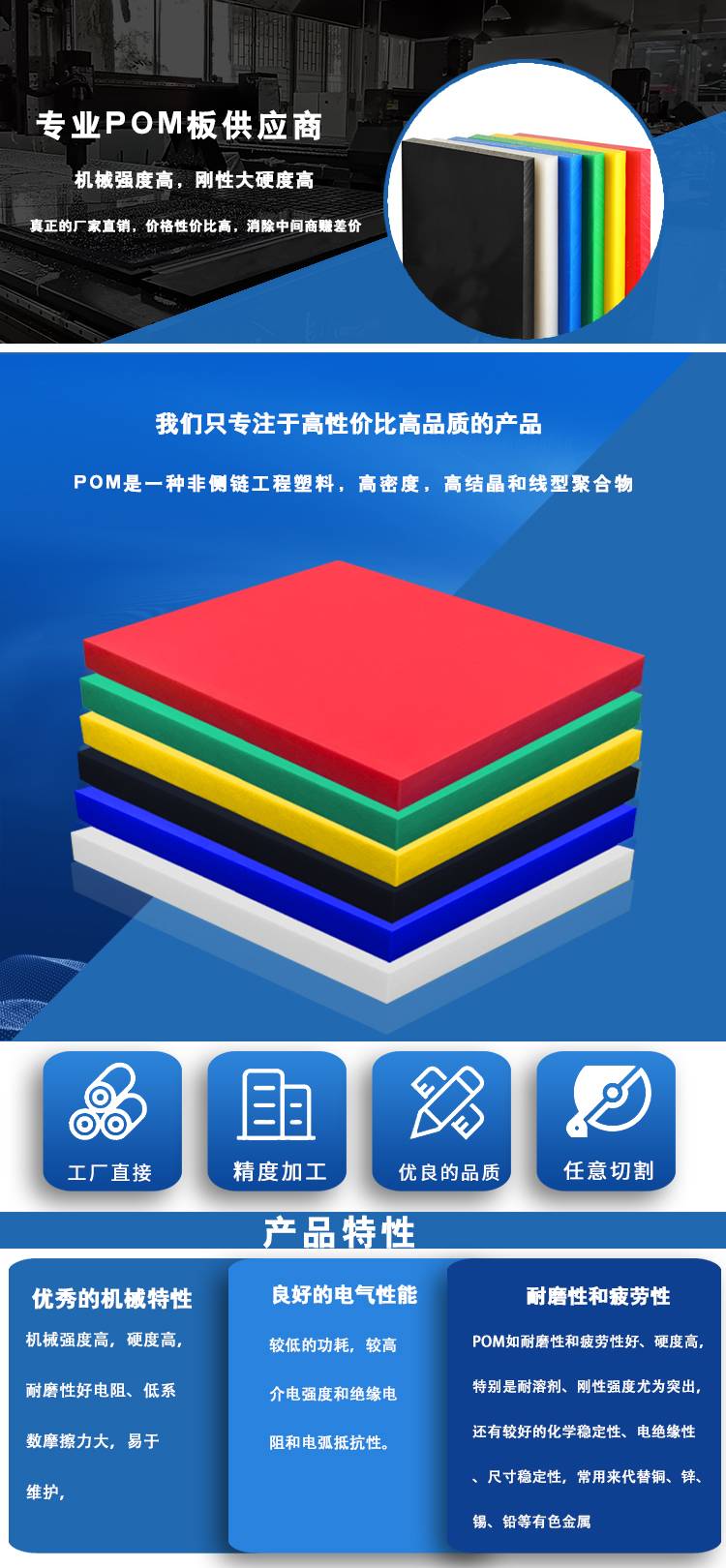 塑膠彩色加纖POM板賽鋼耐磨剛性好防靜電POM板塊